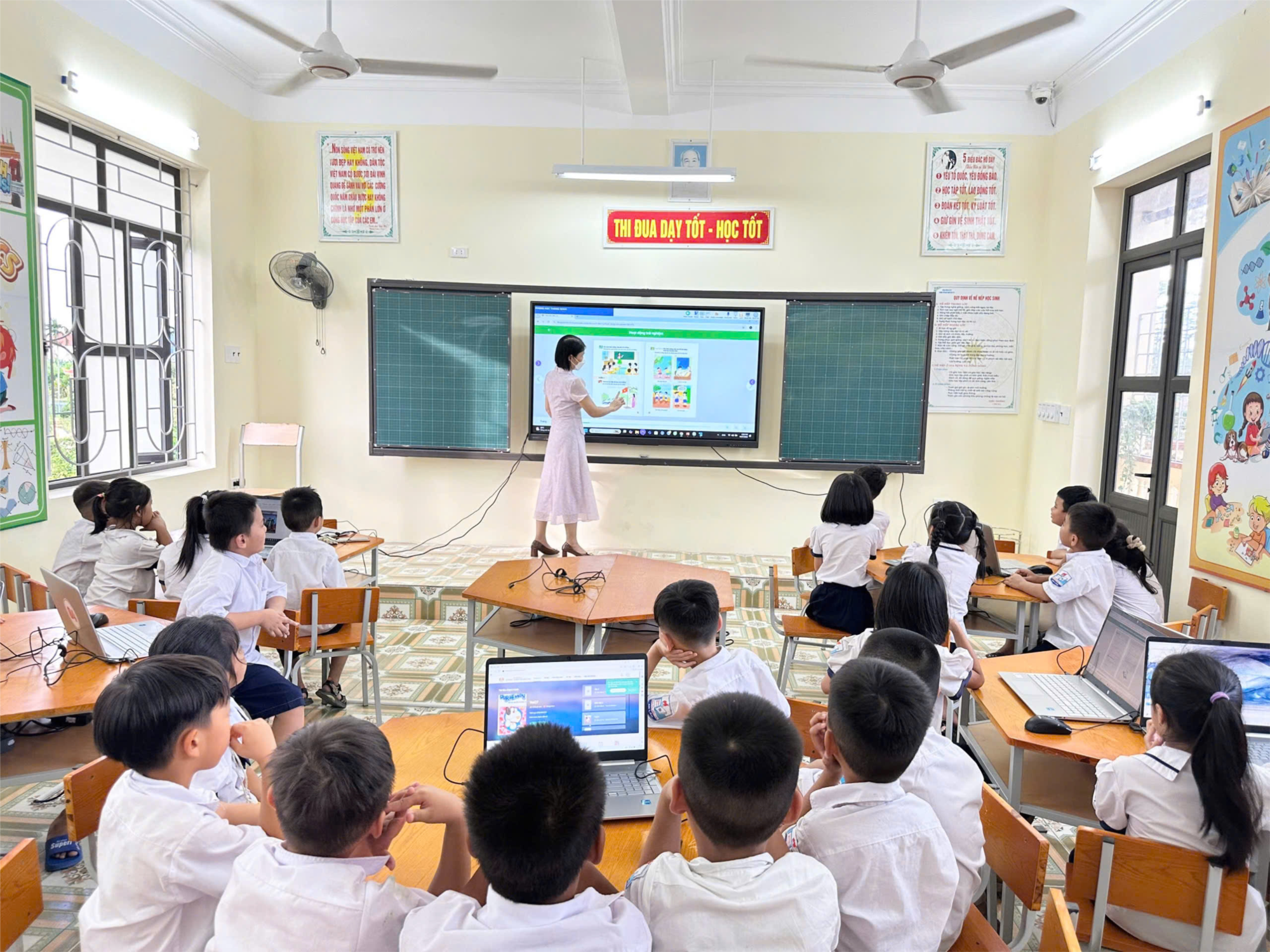 Thực hiện nhiện vụ năm học "Đổi mới phương pháp dạy học, tích cực ứng dụng công nghệ thông tin và chuyển đổi số trong dạy học và giáo dục. Hôm nay, cô trò lớp 2D đã có một tiết học Tiếng Việt thật sôi nổi và thú vị trong phòng học thông minh của nhà trường. Với không gian hiện đại cùng sự hỗ trợ của công nghệ đã giúp các em tiếp cận bài học một cách sinh động và hấp dẫn hơn.