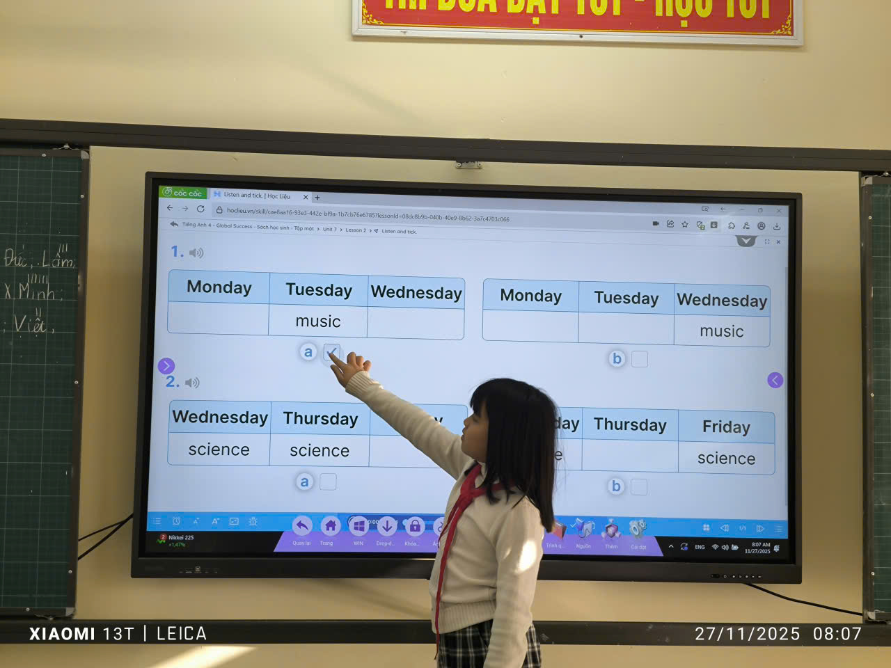 Bên cạnh đó, việc ứng dụng công nghệ thông tin như ti vi màn hình tương tác, laptop, âm thanh chuẩn bản ngữ đã hỗ trợ học sinh rèn luyện tốt các kỹ năng nghe – nói – đọc – viết. Học sinh được khuyến khích tham gia trả lời câu hỏi, trình bày ý kiến và hợp tác cùng các bạn trong quá trình học tập.