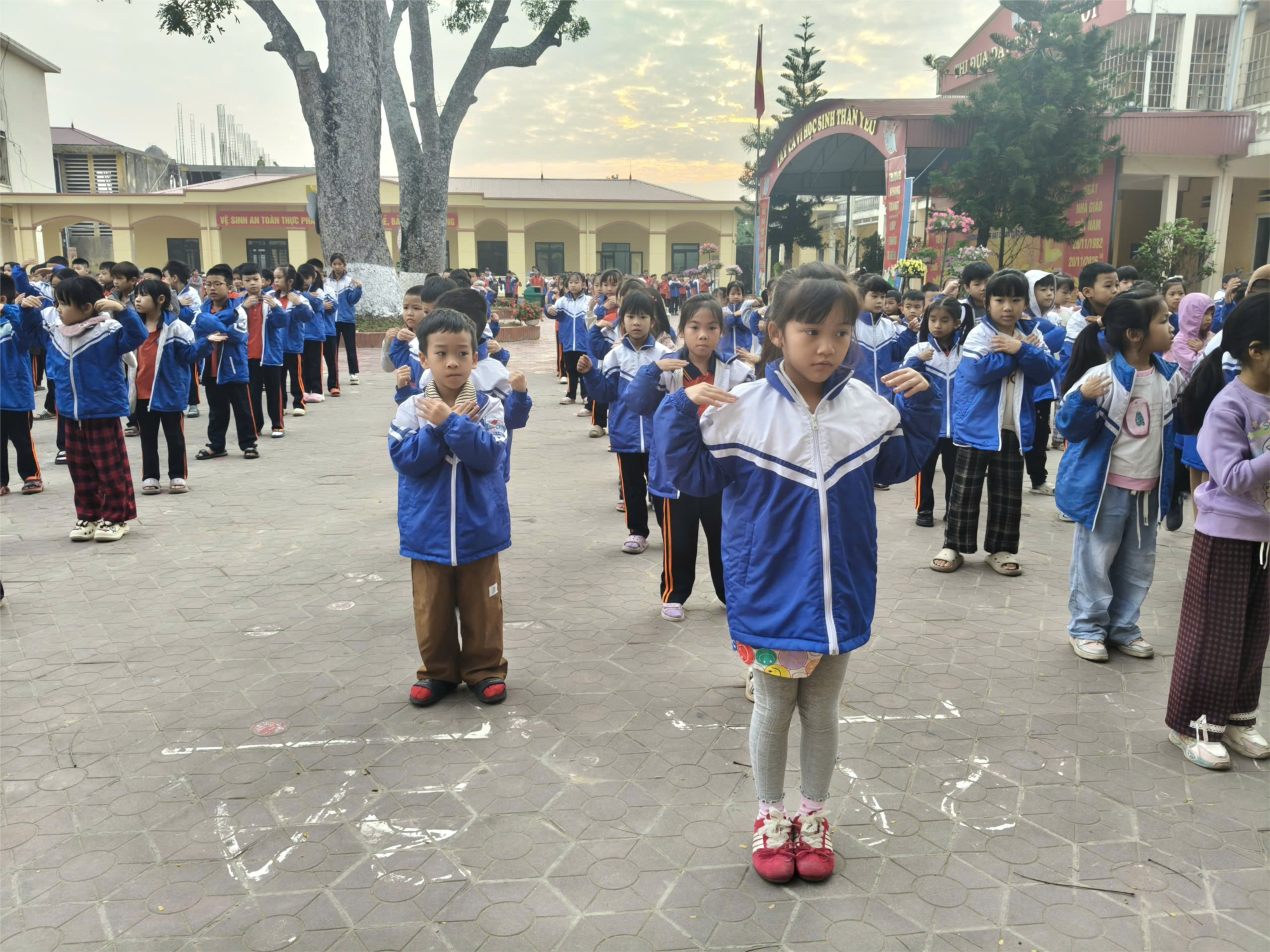 Nhằm tạo thói quen rèn luyện thân thể và khởi động một ngày học tập đầy hứng khởi, lớp 1E đã duy trì phong trào tập thể dục buổi sáng đều đặn ngay từ đầu năm học. Mỗi sáng, các em học sinh nhanh chóng ổn định đội hình, cùng thực hiện các động tác đơn giản, vui nhộn theo nhạc.