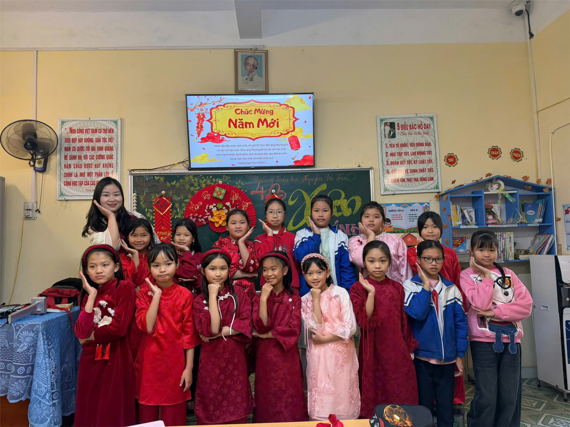 Nhân dịp xuân về, cô giáo cũng tổ chức chụp ảnh Tết cho các em học sinh. Những nụ cười rạng rỡ, hồn nhiên đã lưu giữ lại những khoảnh khắc đẹp của tuổi học trò – giản dị nhưng đầy ý nghĩa.