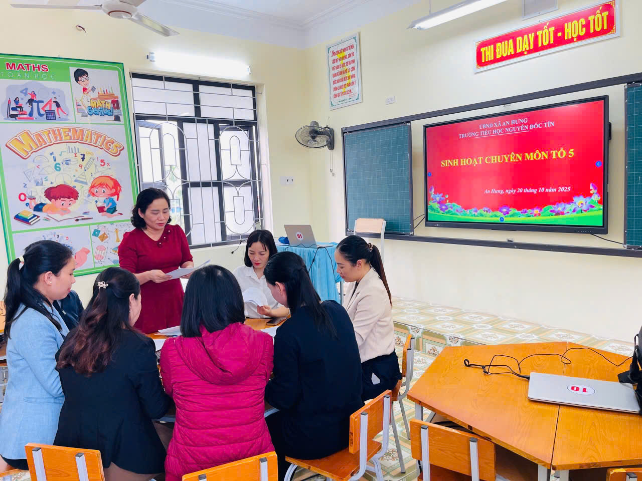 Thực hiện kế hoạch chuyên môn năm học 2025–2026, chiều ngày 03 tháng 11 năm 2025, Tổ 5 Trường Tiểu học Nguyễn Đốc Tín đã tổ chức buổi sinh hoạt chuyên môn nhằm đánh giá, rút kinh nghiệm sau đợt thi Giáo viên dạy giỏi cấp trường.
