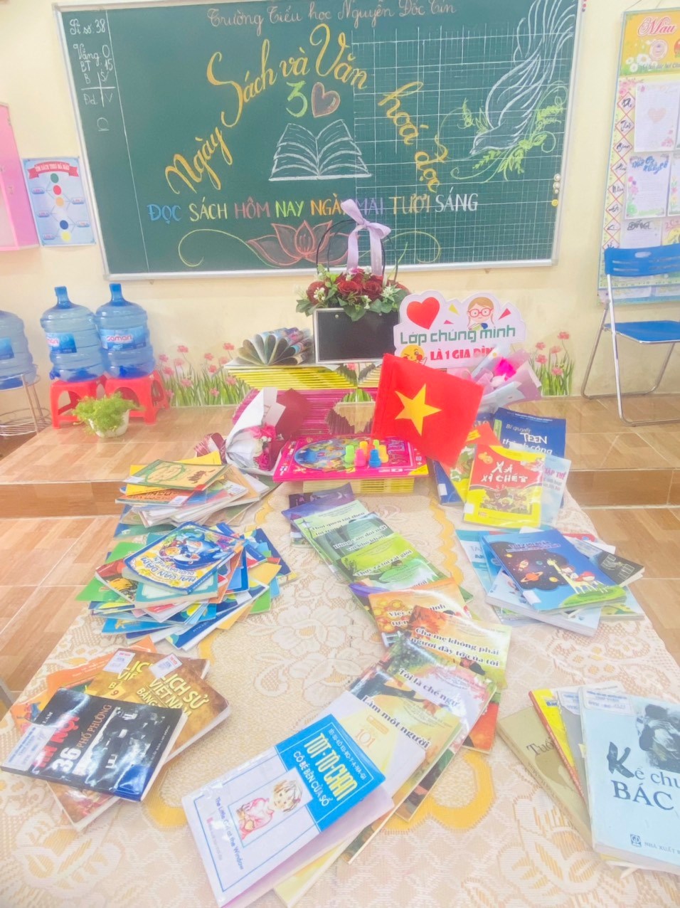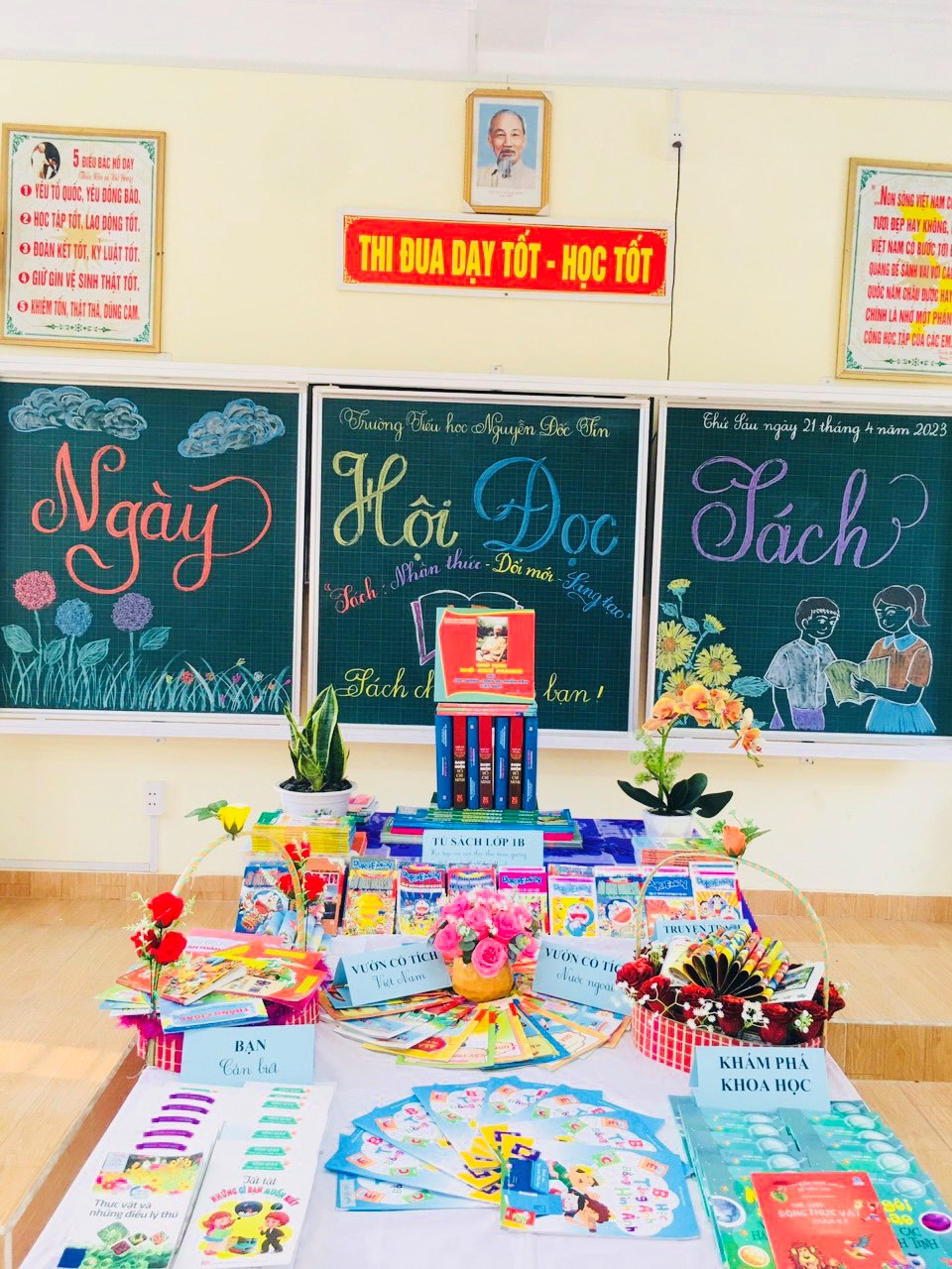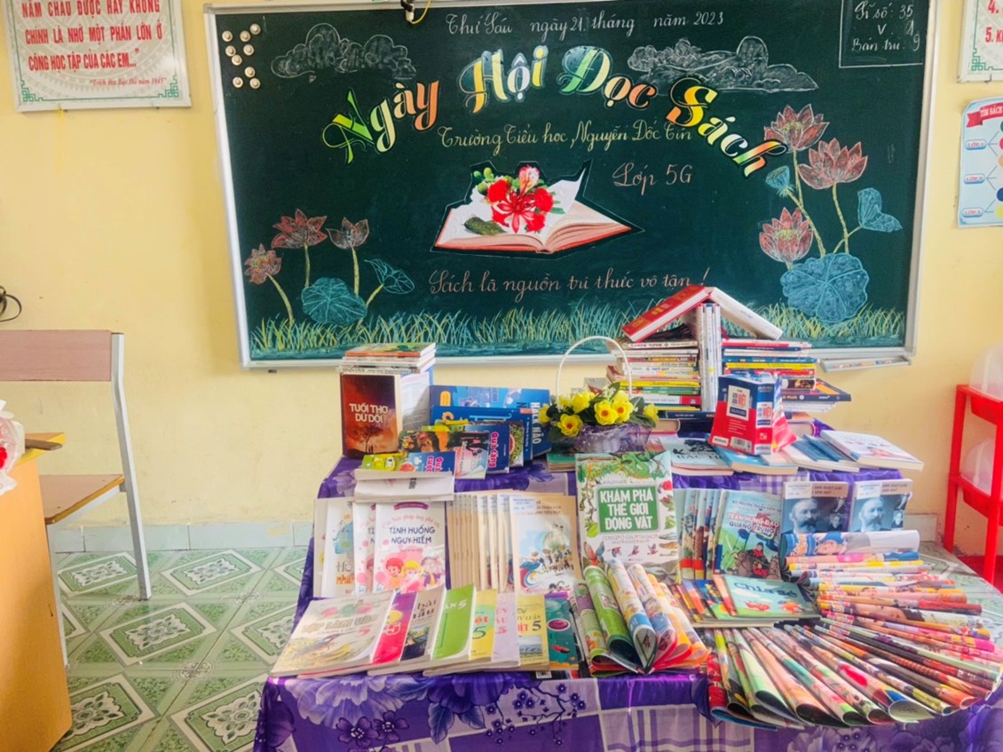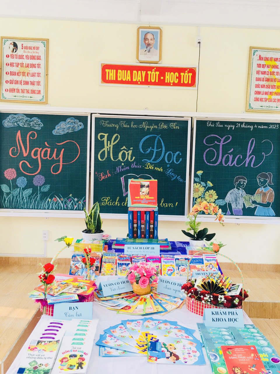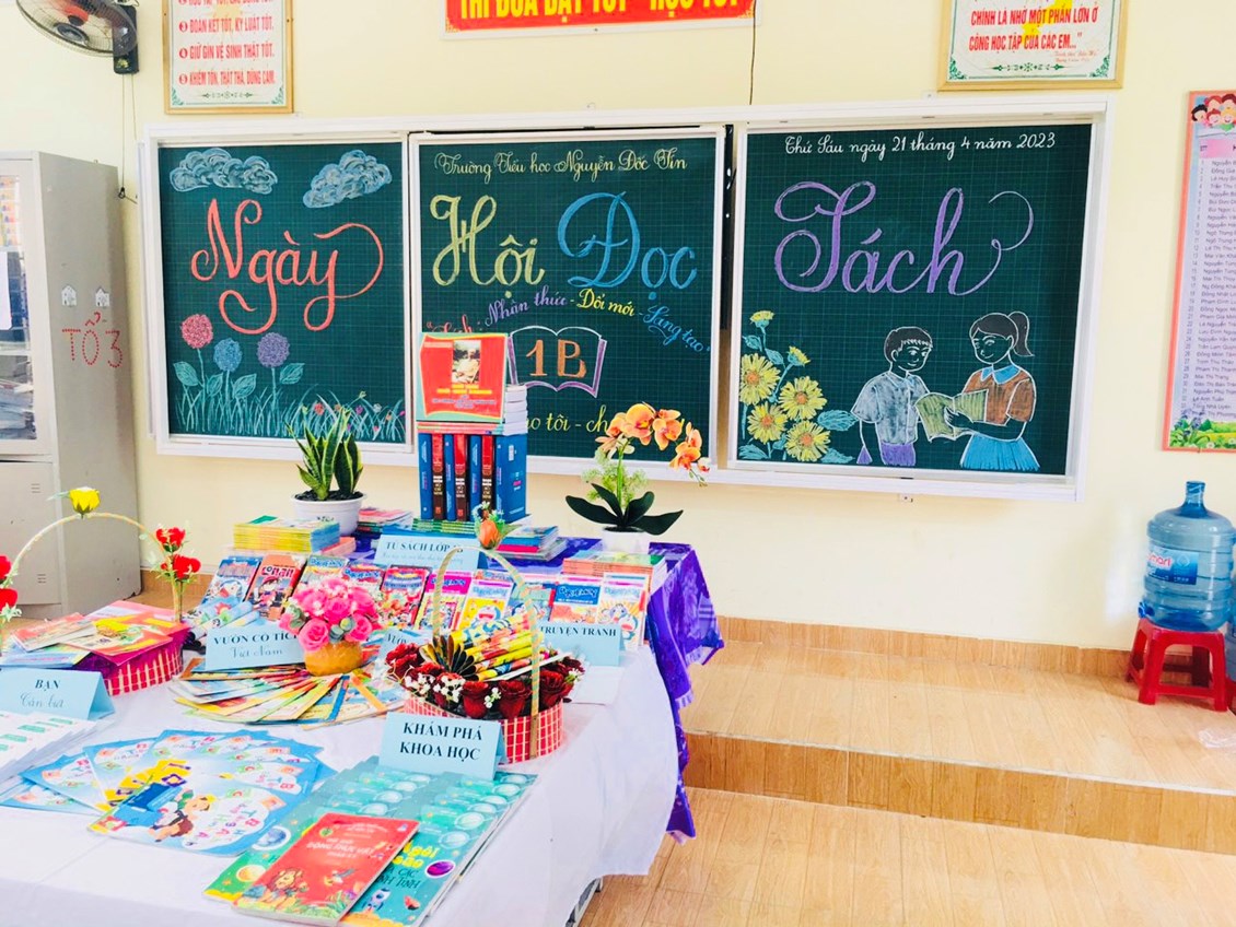 Trong đời sống tinh thần của mỗi chúng ta, sách là sản phẩm văn hóa tinh thần, là kho tàng tri thức đóng vai trò rất quan trọng, là người thầy vĩ đại thắp sáng trong mỗi chúng ta nguồn tri thức vô tận. Dạy cho chúng ta cách sống, cách làm người, hướng tới những giá trị nhân văn cao cả. Có thể nói sách là những người bạn gần gũi chia sẻ mọi niềm vui, nỗi buồn của mỗi người. Và đọc sách đã trở thành một nhu cầu cần thiết không thể thiếu của mỗi con người. Cha ông ta đã coi việc đọc sách là một hành vi văn hóa cao đẹp. Từ đọc sách, sưu tầm sách, xây dựng tủ sách, thư viện là một phần của việc hình thành văn hóa đọc. Văn hóa đọc là một trong những nguồn năng lượng quan trọng thúc đẩy sự phát triển bền vững. Để góp phần chung tay vào việc hưởng ứng Ngày sách và Văn hoá đọc Việt Nam, ngay từ đầu năm học trường Tiểu học Nguyễn Đốc Tín đã tuyên truyền tới các cán bộ, giáo viên và các em học sinh việc “đọc sách” nhằm tạo sự hưởng ứng mạnh mẽ, sâu rộng đối với Ngày sách; xây dựng phong trào đọc sách trở thành thói quen, nét đẹp văn hóa trong trường học. Ngày 21/4/2023 trường đã tổ chức “Ngày hội đọc sách” thu hút 100% các thầy cô và các em học sinh tham gia. Dưới đây là một số hình ảnh của “Ngày hội đọc sách” tại trường Tiểu học Nguyễn Đốc Tín: