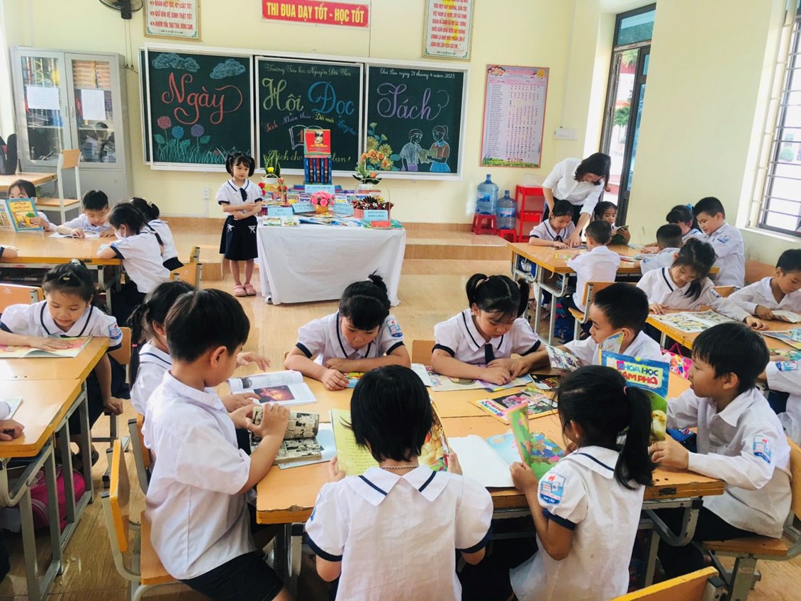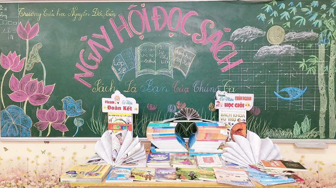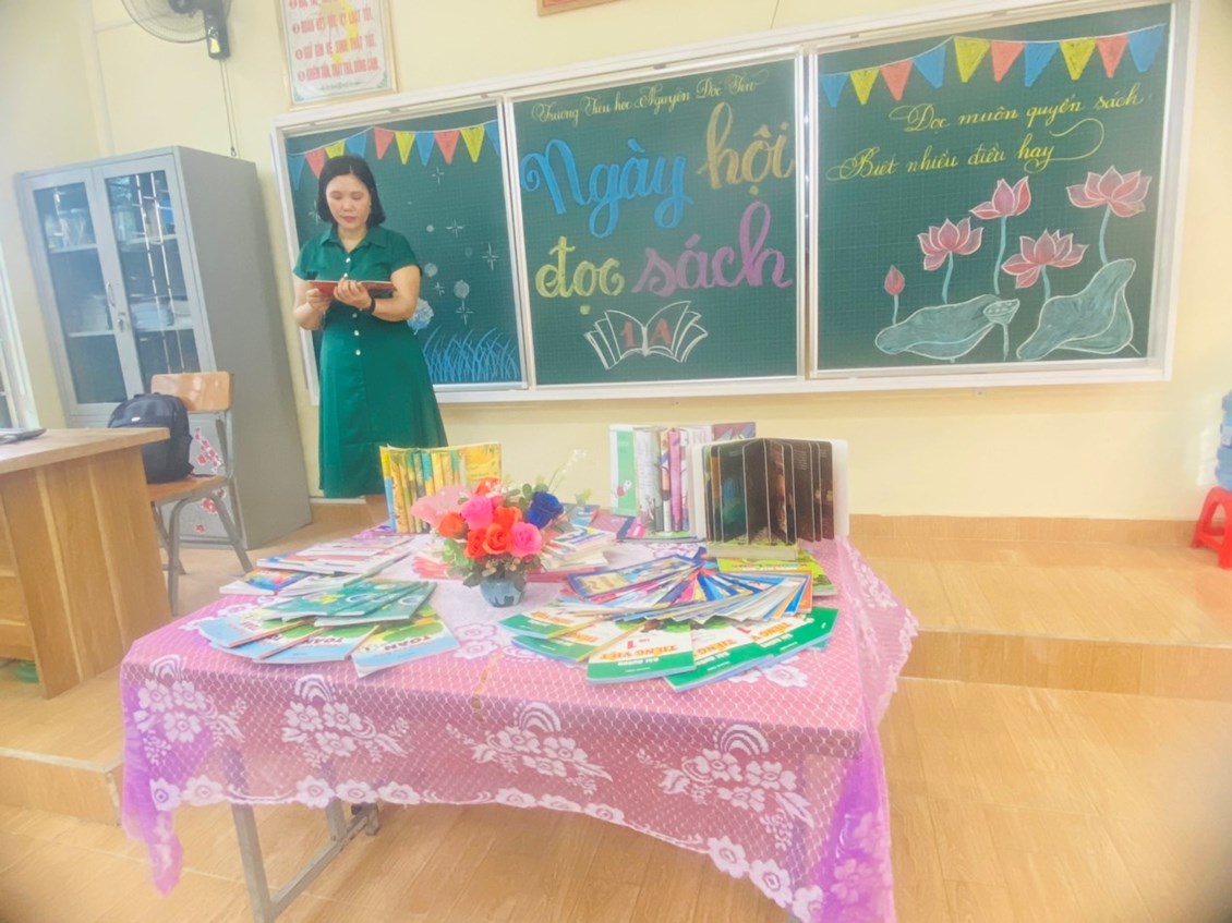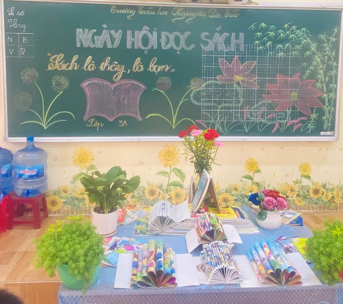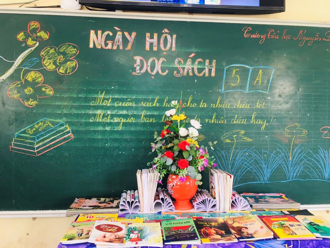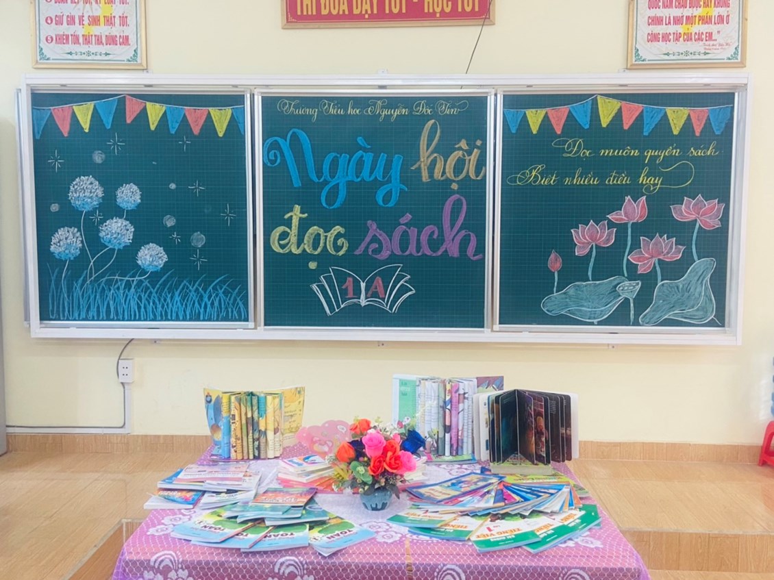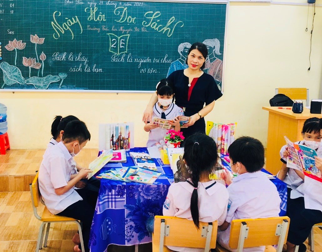Trong đời sống tinh thần của mỗi chúng ta, sách là sản phẩm văn hóa tinh thần, là kho tàng tri thức đóng vai trò rất quan trọng, là người thầy vĩ đại thắp sáng trong mỗi chúng ta nguồn tri thức vô tận. Dạy cho chúng ta cách sống, cách làm người, hướng tới những giá trị nhân văn cao cả. Có thể nói sách là những người bạn gần gũi chia sẻ mọi niềm vui, nỗi buồn của mỗi người. Và đọc sách đã trở thành một nhu cầu cần thiết không thể thiếu của mỗi con người. Cha ông ta đã coi việc đọc sách là một hành vi văn hóa cao đẹp. Từ đọc sách, sưu tầm sách, xây dựng tủ sách, thư viện là một phần của việc hình thành văn hóa đọc. Văn hóa đọc là một trong những nguồn năng lượng quan trọng thúc đẩy sự phát triển bền vững. Để góp phần chung tay vào việc hưởng ứng Ngày sách và Văn hoá đọc Việt Nam, ngay từ đầu năm học trường Tiểu học Nguyễn Đốc Tín đã tuyên truyền tới các cán bộ, giáo viên và các em học sinh việc “đọc sách” nhằm tạo sự hưởng ứng mạnh mẽ, sâu rộng đối với Ngày sách; xây dựng phong trào đọc sách trở thành thói quen, nét đẹp văn hóa trong trường học. Ngày 21/4/2023 trường đã tổ chức “Ngày hội đọc sách” thu hút 100% các thầy cô và các em học sinh tham gia. Dưới đây là một số hình ảnh của “Ngày hội đọc sách” tại trường Tiểu học Nguyễn Đốc Tín: