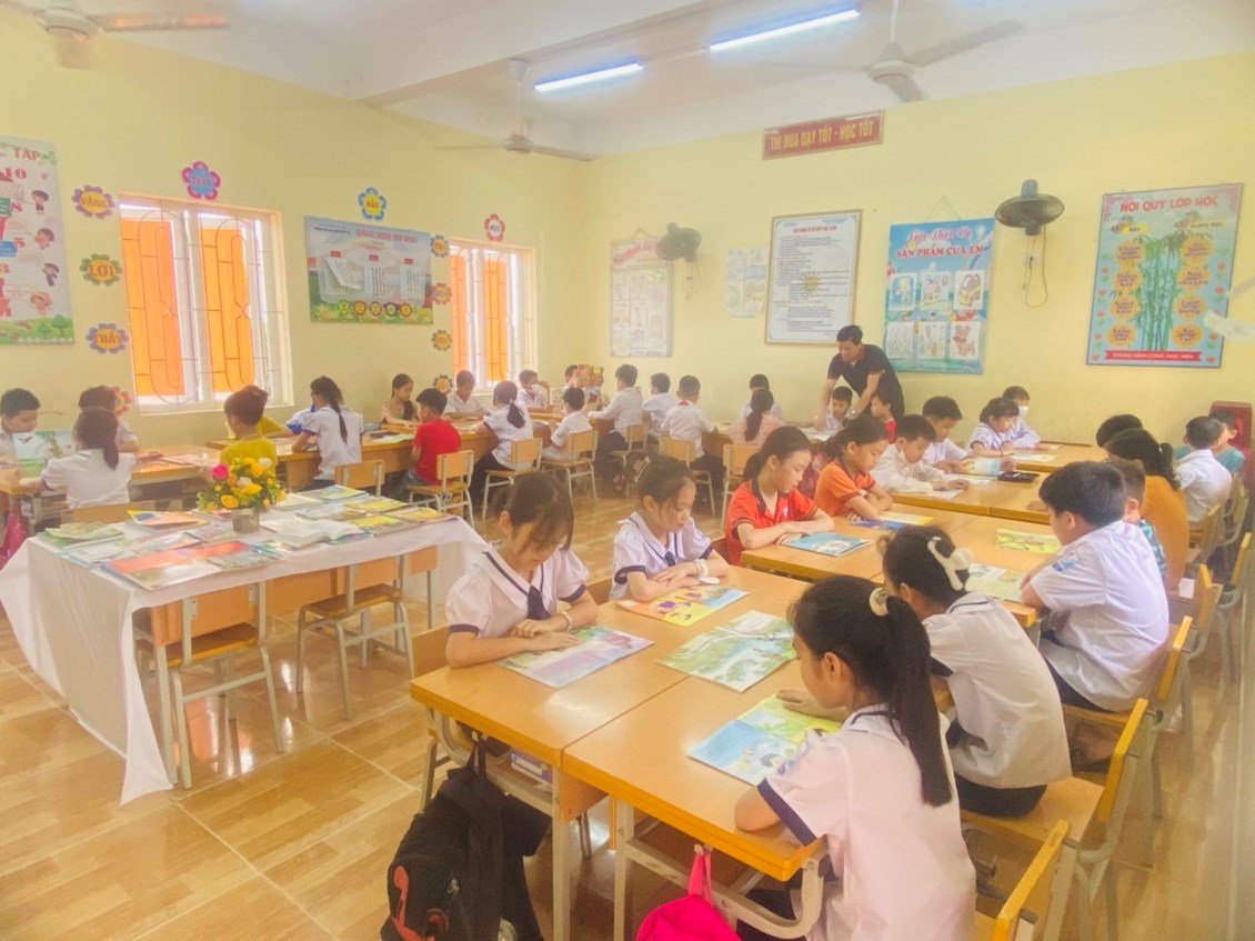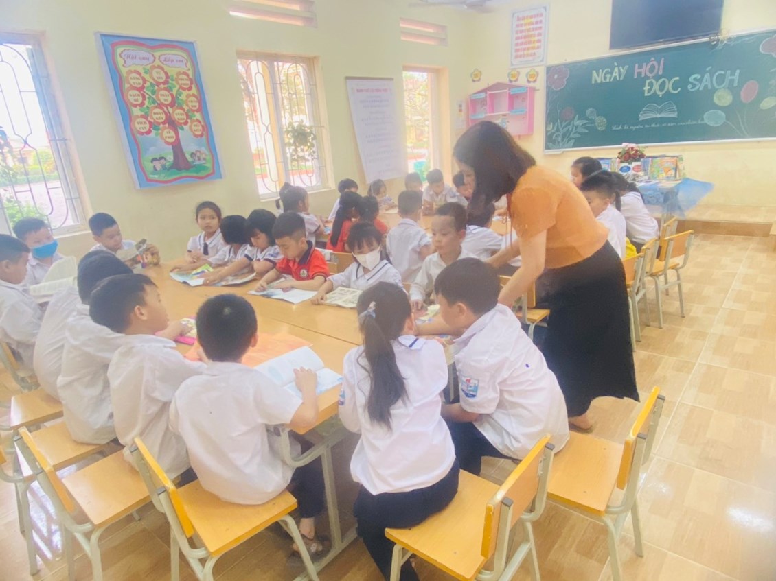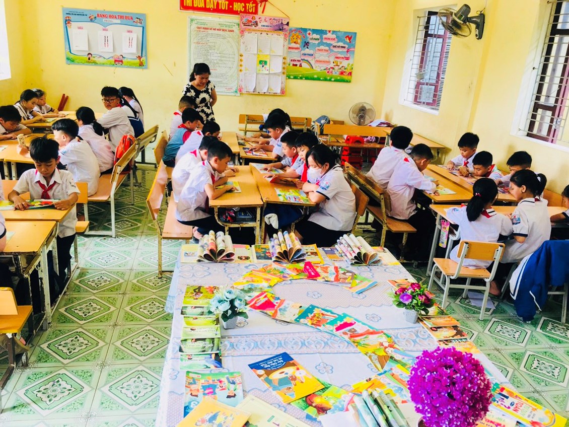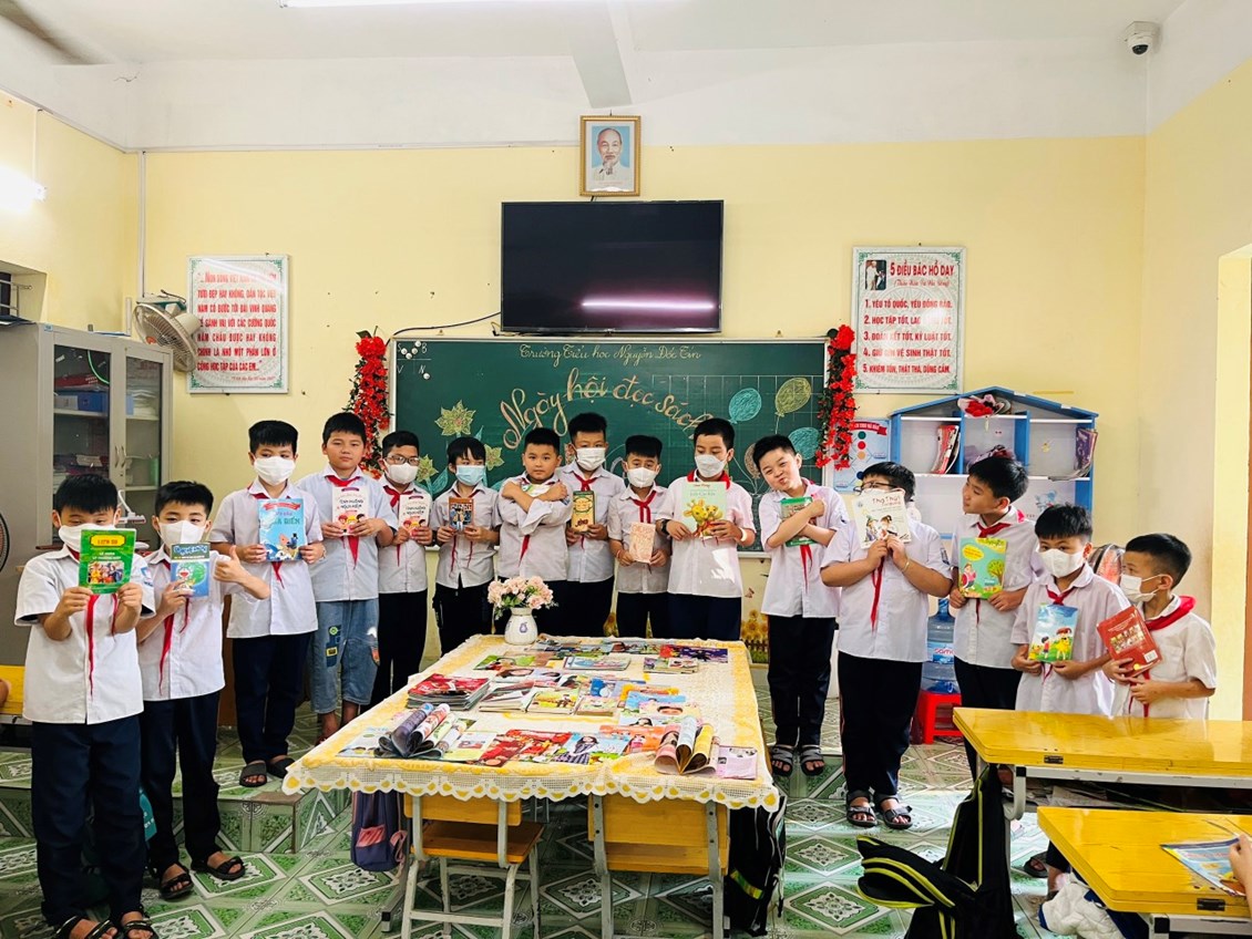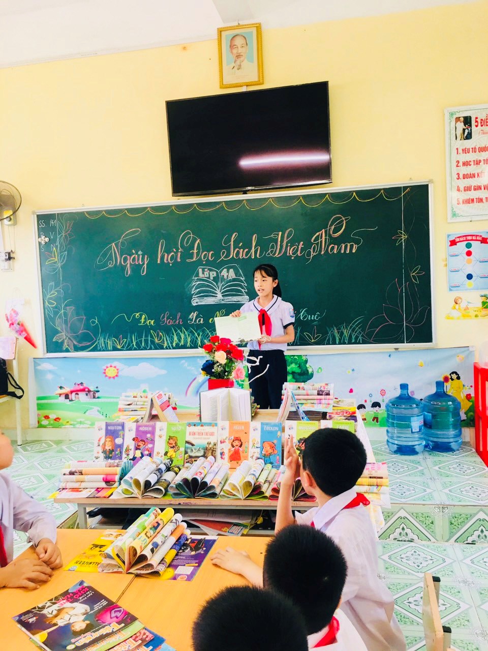 Trong đời sống tinh thần của mỗi chúng ta, sách là sản phẩm văn hóa tinh thần, là kho tàng tri thức đóng vai trò rất quan trọng, là người thầy vĩ đại thắp sáng trong mỗi chúng ta nguồn tri thức vô tận. Dạy cho chúng ta cách sống, cách làm người, hướng tới những giá trị nhân văn cao cả. Có thể nói sách là những người bạn gần gũi chia sẻ mọi niềm vui, nỗi buồn của mỗi người. Và đọc sách đã trở thành một nhu cầu cần thiết không thể thiếu của mỗi con người. Cha ông ta đã coi việc đọc sách là một hành vi văn hóa cao đẹp. Từ đọc sách, sưu tầm sách, xây dựng tủ sách, thư viện là một phần của việc hình thành văn hóa đọc. Văn hóa đọc là một trong những nguồn năng lượng quan trọng thúc đẩy sự phát triển bền vững. Để góp phần chung tay vào việc hưởng ứng Ngày sách và Văn hoá đọc Việt Nam, ngay từ đầu năm học trường Tiểu học Nguyễn Đốc Tín đã tuyên truyền tới các cán bộ, giáo viên và các em học sinh việc “đọc sách” nhằm tạo sự hưởng ứng mạnh mẽ, sâu rộng đối với Ngày sách; xây dựng phong trào đọc sách trở thành thói quen, nét đẹp văn hóa trong trường học. Ngày 21/4/2023 trường đã tổ chức “Ngày hội đọc sách” thu hút 100% các thầy cô và các em học sinh tham gia. Dưới đây là một số hình ảnh của “Ngày hội đọc sách” tại trường Tiểu học Nguyễn Đốc Tín: