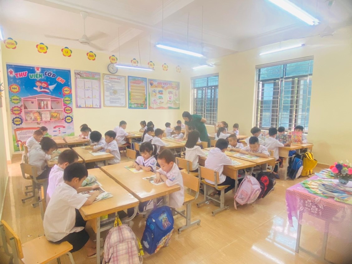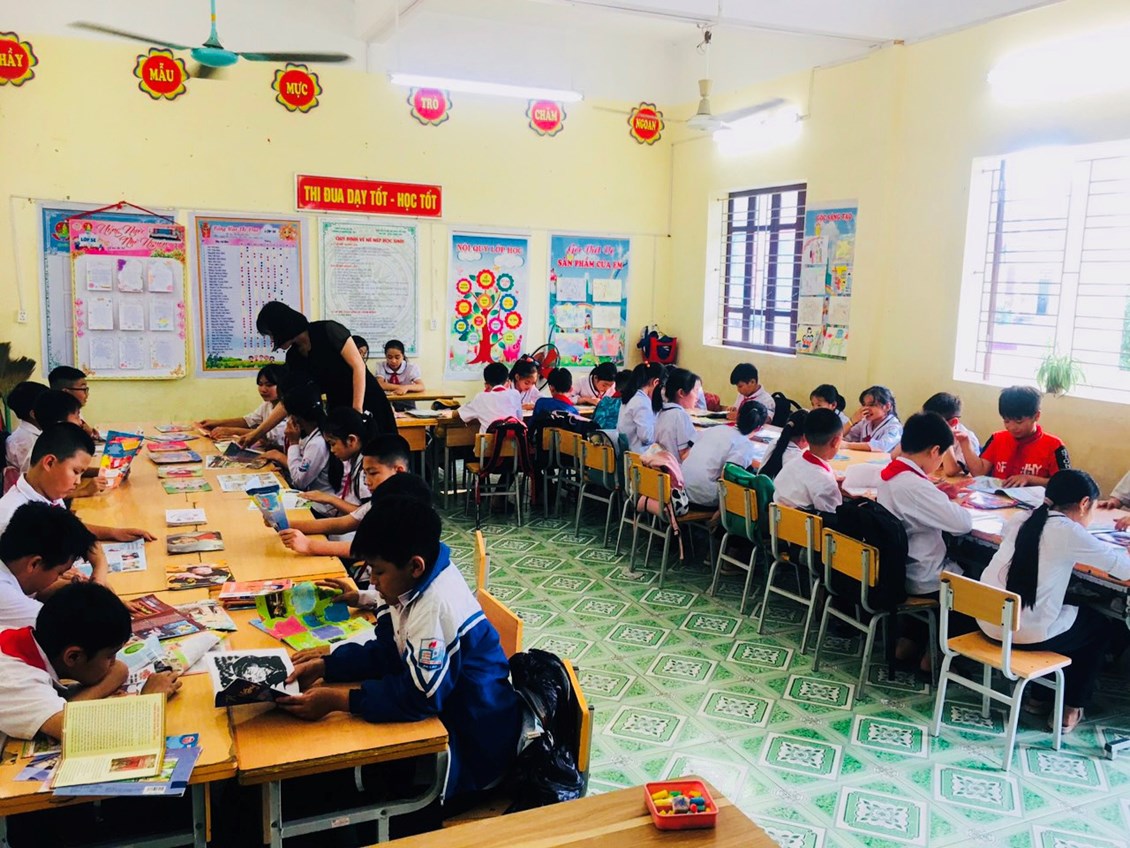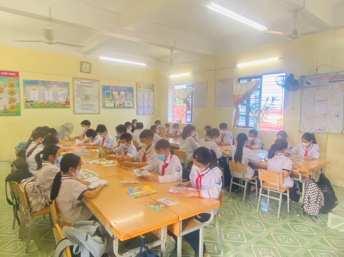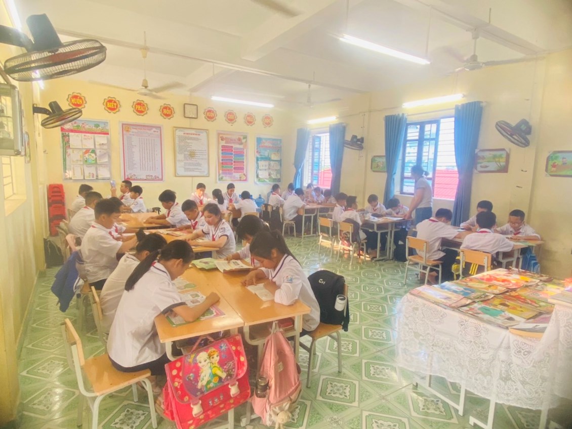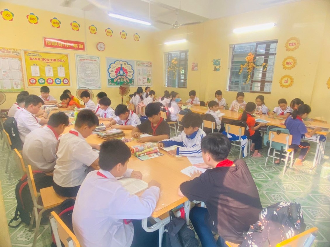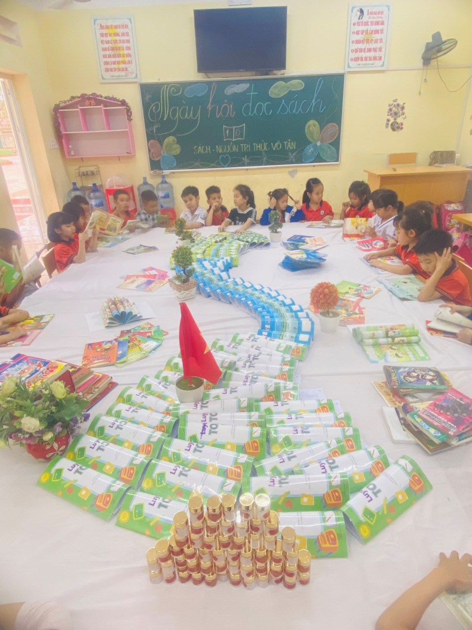 Trong đời sống tinh thần của mỗi chúng ta, sách là sản phẩm văn hóa tinh thần, là kho tàng tri thức đóng vai trò rất quan trọng, là người thầy vĩ đại thắp sáng trong mỗi chúng ta nguồn tri thức vô tận. Dạy cho chúng ta cách sống, cách làm người, hướng tới những giá trị nhân văn cao cả. Có thể nói sách là những người bạn gần gũi chia sẻ mọi niềm vui, nỗi buồn của mỗi người. Và đọc sách đã trở thành một nhu cầu cần thiết không thể thiếu của mỗi con người. Cha ông ta đã coi việc đọc sách là một hành vi văn hóa cao đẹp. Từ đọc sách, sưu tầm sách, xây dựng tủ sách, thư viện là một phần của việc hình thành văn hóa đọc. Văn hóa đọc là một trong những nguồn năng lượng quan trọng thúc đẩy sự phát triển bền vững. Để góp phần chung tay vào việc hưởng ứng Ngày sách và Văn hoá đọc Việt Nam, ngay từ đầu năm học trường Tiểu học Nguyễn Đốc Tín đã tuyên truyền tới các cán bộ, giáo viên và các em học sinh việc “đọc sách” nhằm tạo sự hưởng ứng mạnh mẽ, sâu rộng đối với Ngày sách; xây dựng phong trào đọc sách trở thành thói quen, nét đẹp văn hóa trong trường học. Ngày 21/4/2023 trường đã tổ chức “Ngày hội đọc sách” thu hút 100% các thầy cô và các em học sinh tham gia. Dưới đây là một số hình ảnh của “Ngày hội đọc sách” tại trường Tiểu học Nguyễn Đốc Tín: