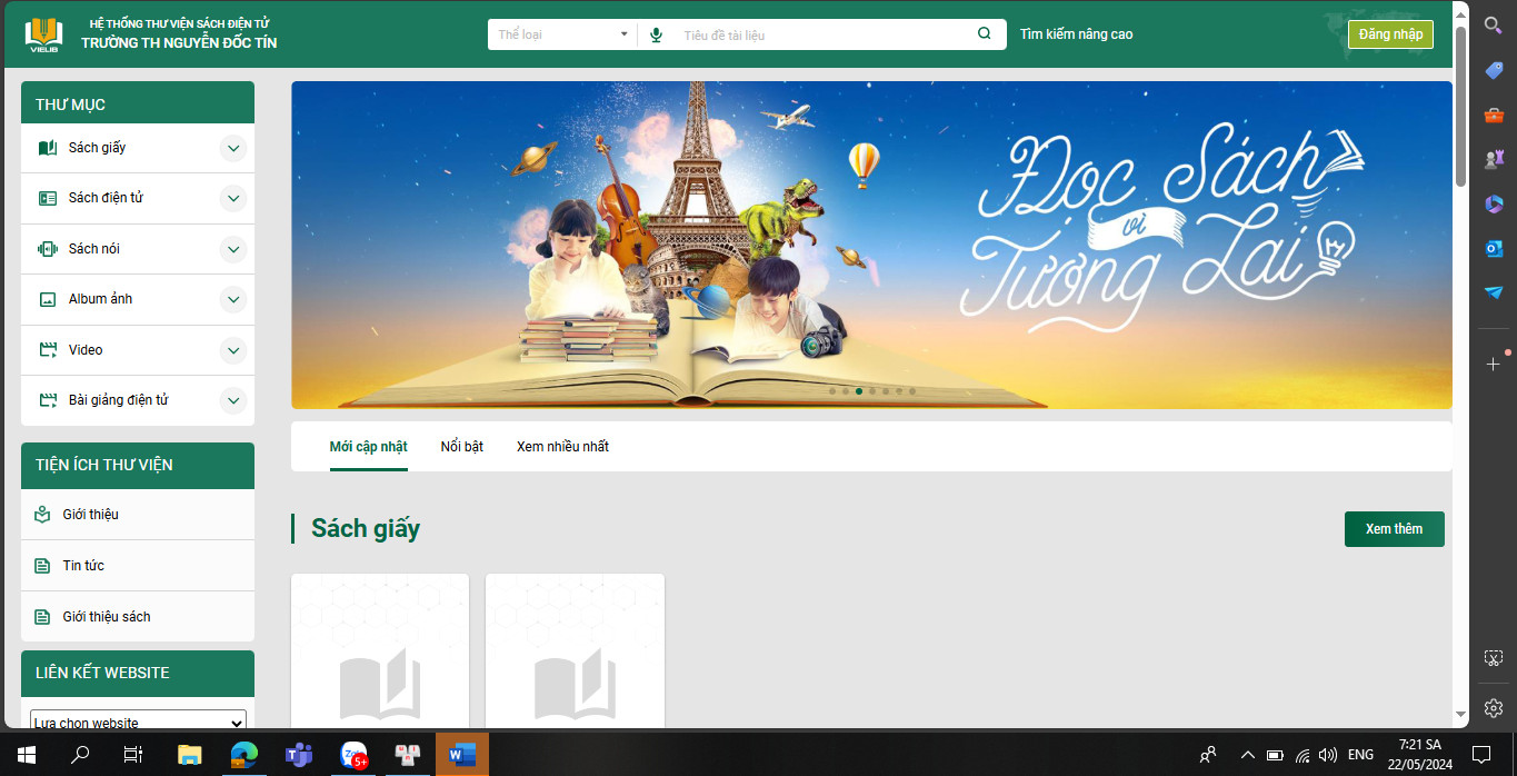 Trang thư viện điện tử của trường Tiểu học Nguyễn Đốc Tín, An Lão, Hải Phòng