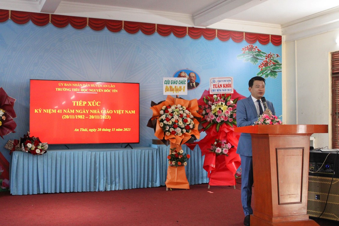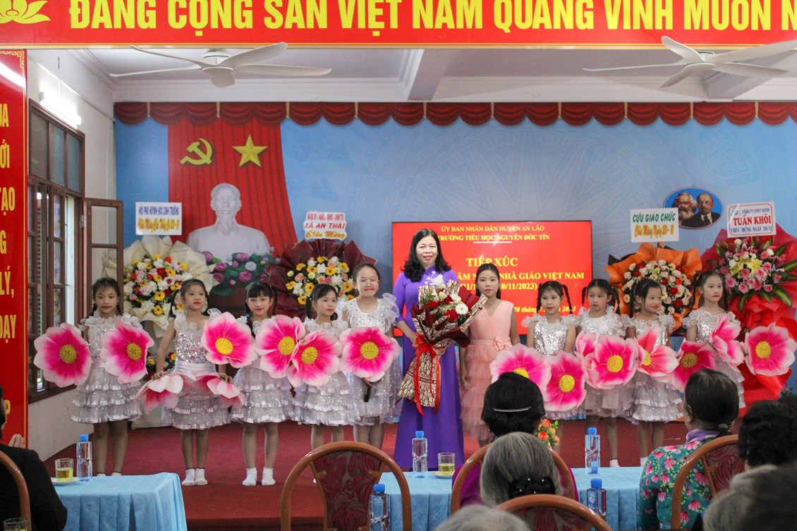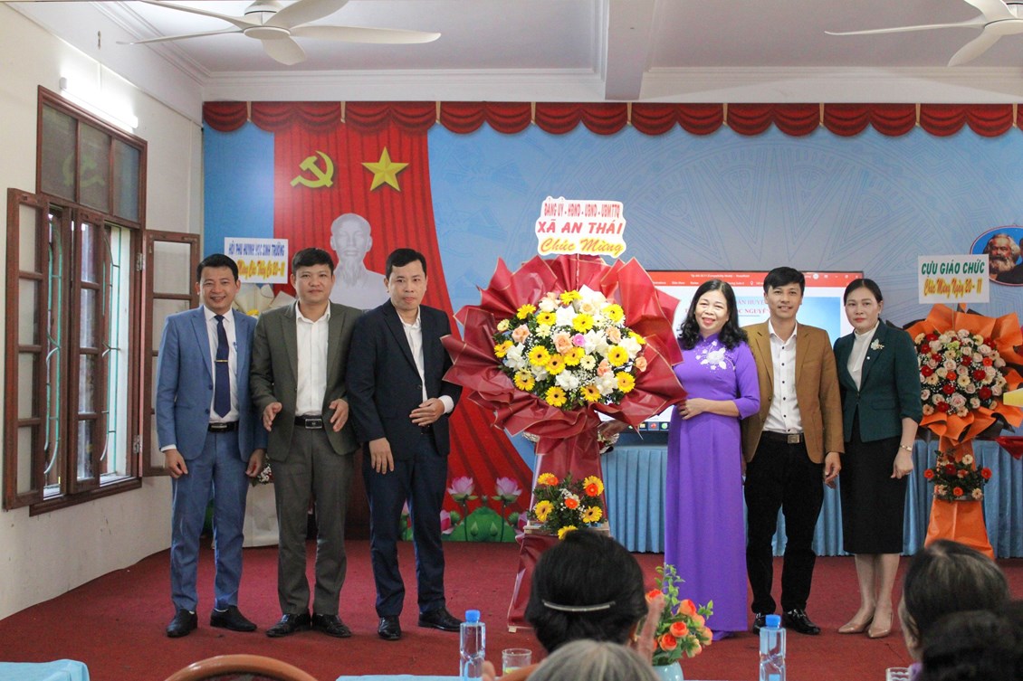 Lãnh đạo xã An Thái tặng hoa chúc mừng nhà trường