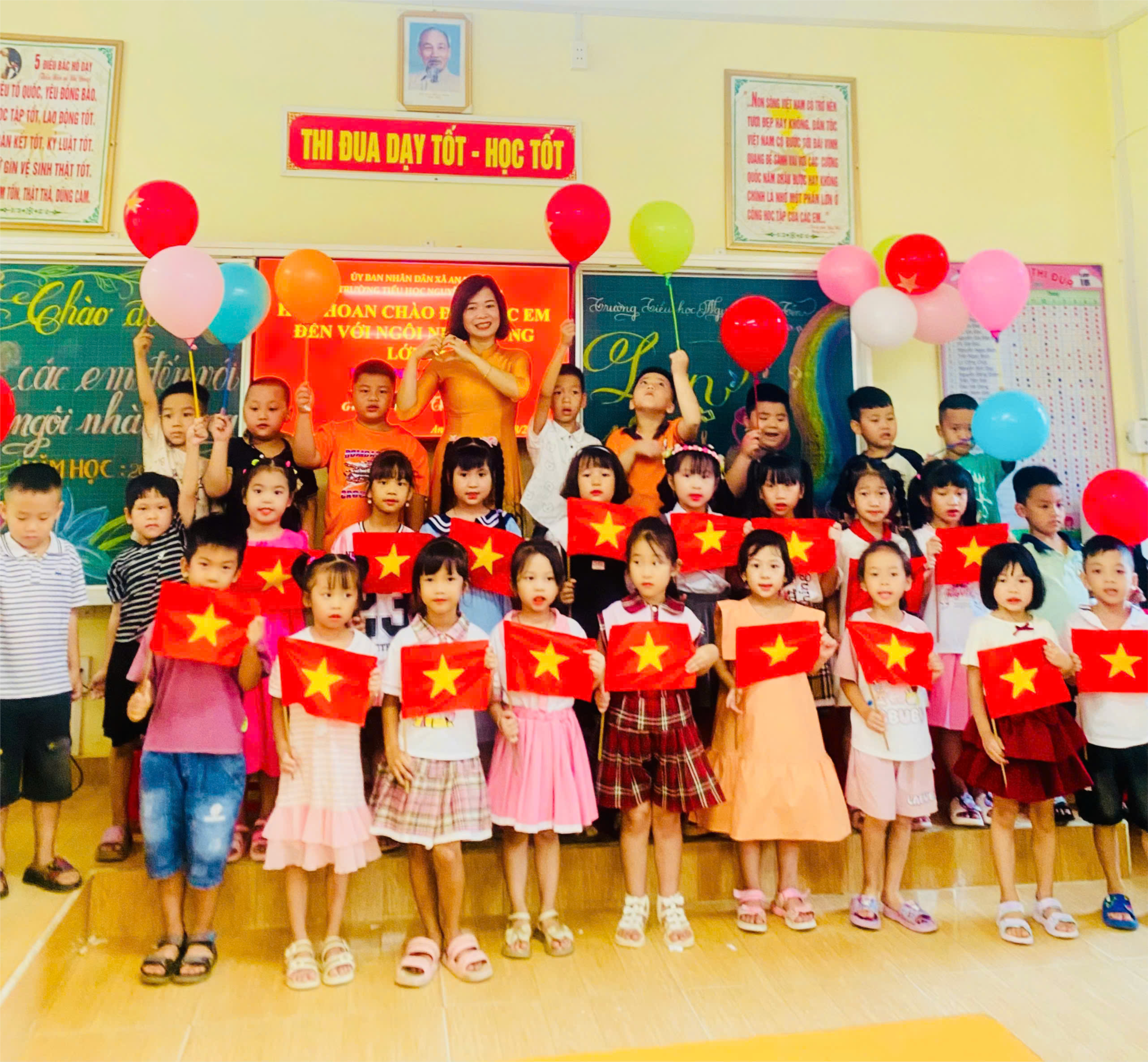 Năm học 2025-2026 khối lớp 1 của trường có 5 lớp gồm các cô: Cô Trần Thị Trà - lớp 1A, cô Phạm Thị Hậu - lớp 1B, cô Phạm Thị Loàn - lớp 1C, cô Phạm Thị Sơn - lớp 1D, cô Lê Hồng Hoa - lớp 1E