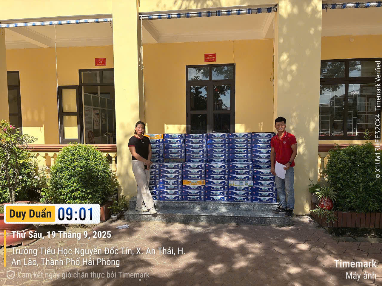 Sáng ngày 19/9/2025, các em học sinh toàn trường đã được nhận những hộp sữa tươi miễn phí từ công ty sữa Kun Doctor.